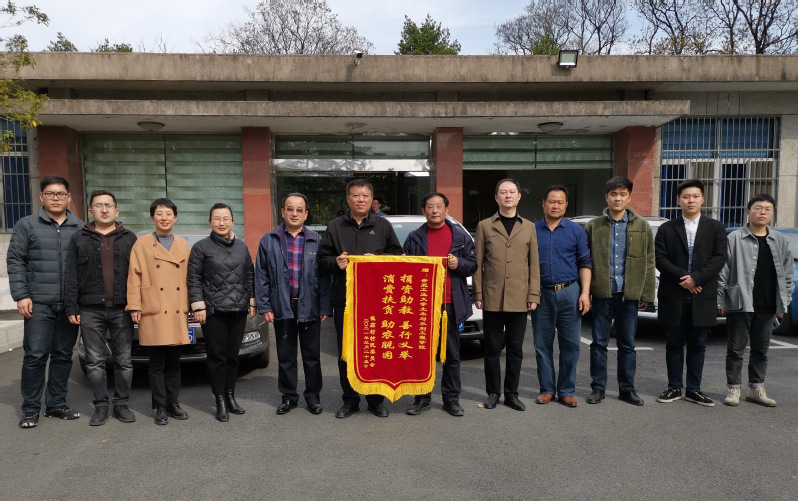 3月24日,六安市金安区马头镇崔店村扶贫干部游庆国、郑兴国等来向学院赠送了助农脱困的锦旗。学院工会委员和教师代表参加了本次活动。