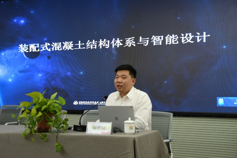 签约仪式结束后,赵瑞阳为工口实验室 师生们做了装配式混凝土结构体系与智能设计专题讲座,介绍了建筑工业化、装配式混凝土建筑的主要结构技术体系、PKPM自主研发的基于BIM平台的装配式建筑设计软件及Python扩展,与学生现场交流,为学生未来学习和发展方向提供宝贵建议。