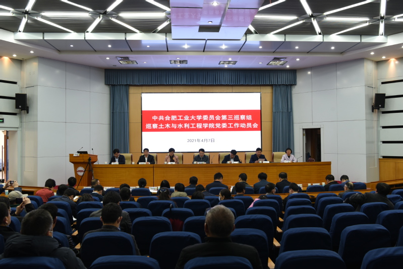 根据校党委关于巡察工作的统一部署,4月7日下午,校党委第三巡察组巡察 工口实验室 党委工作动员会在屯溪路校区学术会议中心大报告厅召开。副校长郑磊,校党委第三巡察组全体成员,巡察办有关负责同志,学院领导班子成员、全体教职工、离退休教师代表和学生代表参加会议。动员会由 工口实验室 常务副院长王静峰主持。