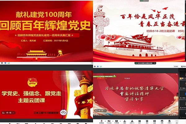 支部书记讲团课,榜样引领思想。5月3日,给排水科学与工程17-2班团支部通过腾讯会议召开“百年恰是风华正茂 青春正当奋进前行”主题团课,团支部书记高天威从党史、新中国史、改革开放史、社会主义发展史等方面带领支部全体成员进行四史学习,了解中国共产党为人民谋幸福、为民族谋复兴、为世界谋大同的实践史,坚定中国共产党的领导的思想共识。工程力学19-1班团支部带领团员同学从井冈山精神,到长征精神,再到延安精神,感受着人类革命史上的壮举,支部书记洪梦静说:“正是对革命理想坚定不移的信念;不怕牺牲,艰苦奋斗的英雄气概;全心全意为人民服务的崇高思想,才能产生伟大的军队、伟大的战士、伟大的奇迹。”