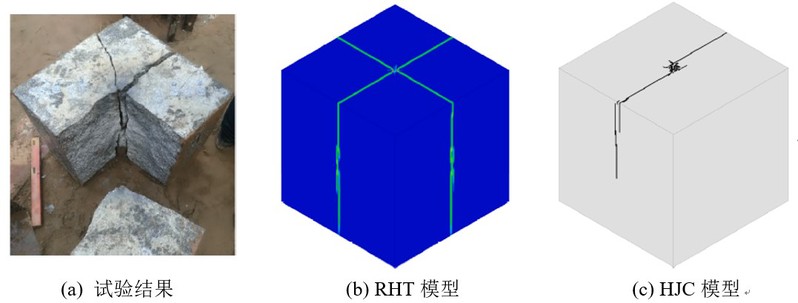 在进行爆炸、冲击等方面的显式动力数值分析时,选取合适的材料本构模型是至关重要的。对于连续损伤本构模型,如Holmquist-Johnson-Cook(下简称HJC)模型和Riedel-Hiermaier-Thoma(下简称RHT),它们均能较好地描述岩石材料在高应变率和大变形下的力学特性。然而,每种本构均有其优劣及适用性,并且描述岩石材料裂纹扩展的方式有所不同。如果在开展数值分析时未能选取合适的本构模型和模拟方法,必然会对数值结果的精度产生影响。