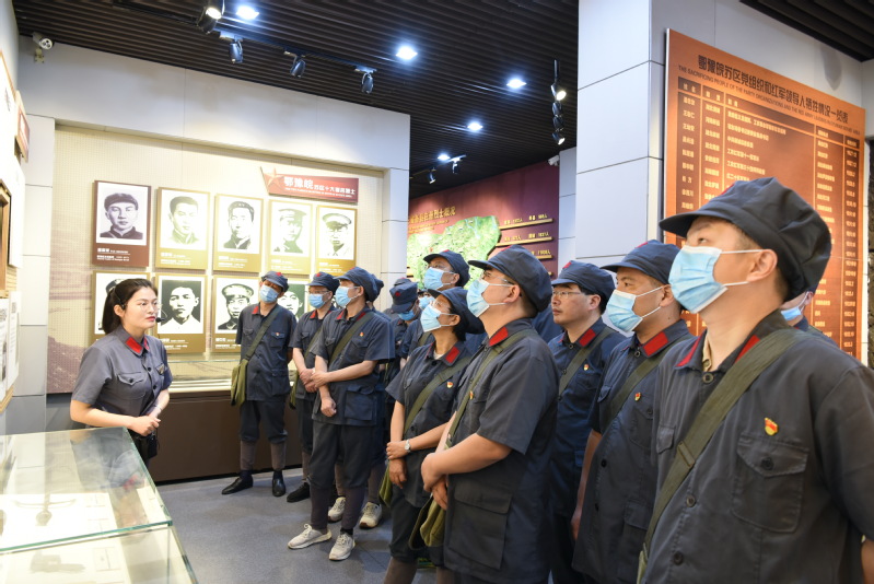 接着,全体学员参观了鄂豫皖苏区革命烈士陵园烈士纪念堂、鄂豫皖苏区首府革命博物馆。大家在一张张老照片、一件件珍贵文物前驻足,它们全面展示了大别山革命根据地形成、发展和壮大的过程,再现了大别山人民在中国共产党的领导下进行艰苦卓绝、波澜壮阔的革命斗争历程和“大别山红旗不倒”的革命气概,大家再一次重温战争年代革命先辈的抛头颅、洒热血的英勇气概和革命精神。