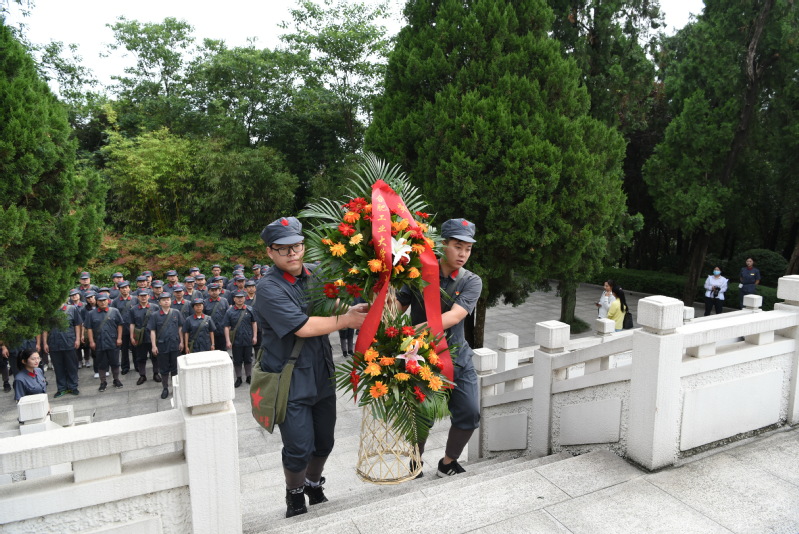 20日上午,全体学员来到全国著名爱国主义教育基地鄂豫皖苏区革命烈士陵园。在巍峨高耸的烈士纪念碑前,全体党员同志庄严肃立,向烈士敬献花篮以寄哀思; 工口实验室 常务副院长王静峰同志神情肃穆,缓步走走上台阶并仔细整理花篮缎带;全体学员向烈士纪念碑三鞠躬,并深情瞻仰烈士纪念碑。在英烈广场,面对鲜红的党旗,大家重温入党誓词,坚定了共产主义理想信念的信心和决心。