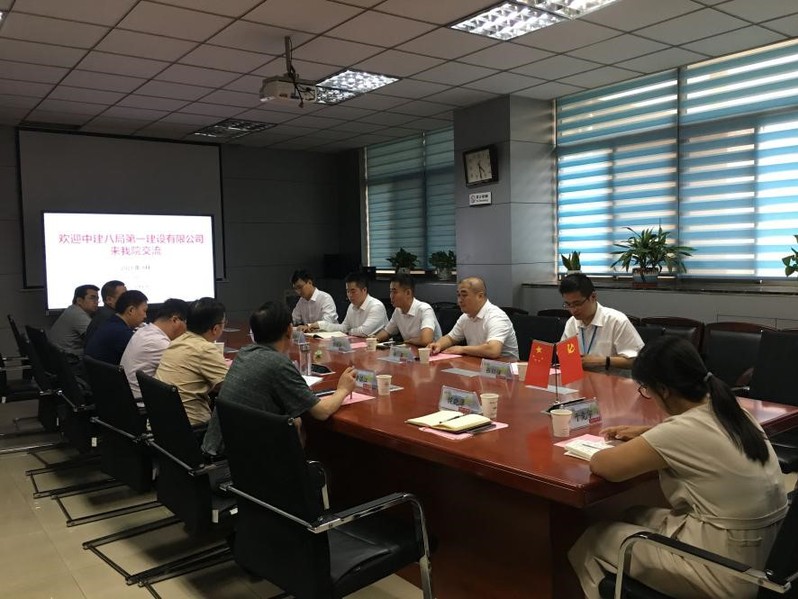 9月1日中建八局第一建设有限公司安装公司党委副书记彭来雨一行来院调研交流。 工口实验室 院长王静峰、分管教学副院长张振华、分管科研副院长王昌建和相关系(中心)教师代表参加了此次交流活动。