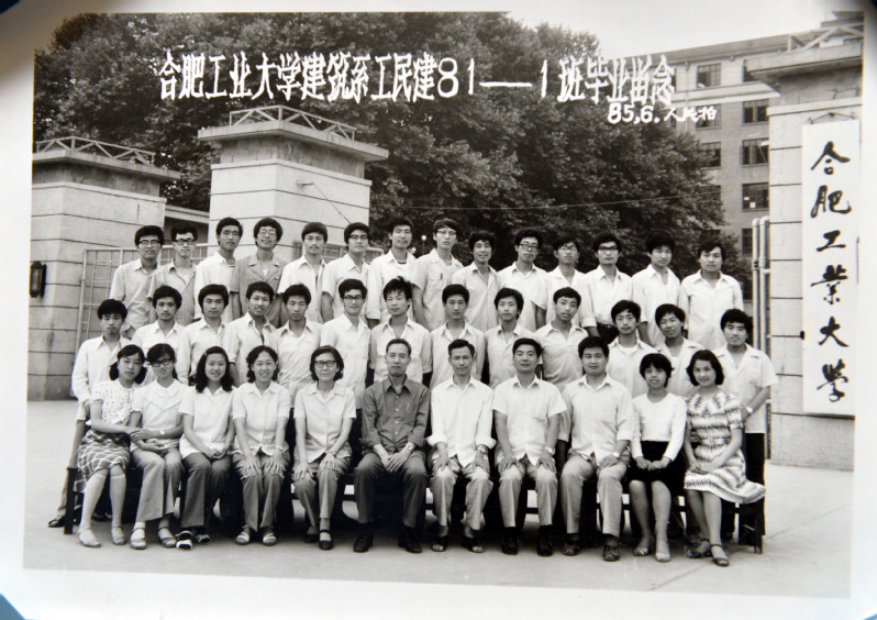 工口实验室 建筑系工民建81-1班毕业留念,1985.6