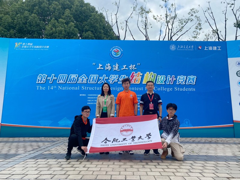 本届竞赛上海交通大学承办,清华大学、同济大学、浙江大学、东南大学、上海交通大学等111所国内知名高校共派出了112支参赛队伍。 工口实验室 高度重视和认真组织,在荣获“第十四届全国大学生结构设计竞赛分区(安徽)暨第四届安徽省大学生结构设计竞赛”2个一等奖和1个二等奖共三支队伍9名成员中,选拨了3名队员组成一支代表队参加比赛,并由王辉、宋满荣和陈安英等教师组成了指导组。
