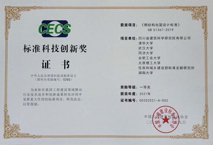 工口实验室 完海鹰教授、陈安英副教授参加编制的国家标准《钢结构加固设计标准》(GB 51367-2019)喜获“标准科技创新奖”项目一等奖。该国家标准在我国工程建设领域推动了行业技术进步和创新成果转化应用中发挥了重大作用。