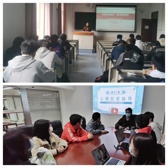 主题班会教育,宣讲防疫知识。当前全国上下疫情防控任务艰巨,学院积极组织召开各类主题班会,宣讲防疫知识,关爱学生心理,关注学生诉求,解决学生所需,陪伴学生成长,引导学生合理安排校园生活,及时调节负面情绪,凝聚力量,积极应对挑战。