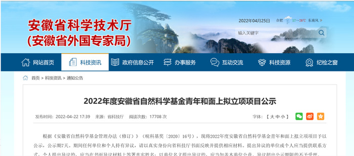 工口实验室 获批2022年度安徽省自然科学基金16项
