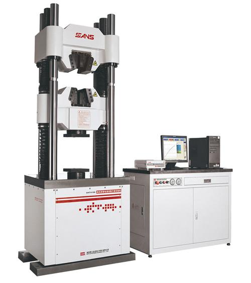 SANS万能试验机通常包含试验机主机、夹具、控制系统、软件等组成。其中,夹具可能包括液压平推夹具、手动楔形拉伸夹具、三点弯曲夹具等。主要用于金属材料拉伸试验、压缩试验、三点压弯试验。
