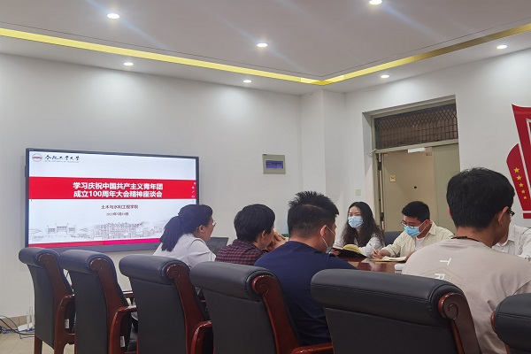 5月10日上午,在组织观看中国共产主义青年团成立100周年大会直播后, 工口实验室 在纬地楼401召开庆祝中国共产主义青年团成立100周年师生座谈会,学院党委、团委相关负责人,辅导员以及青年学生代表参加座谈会。