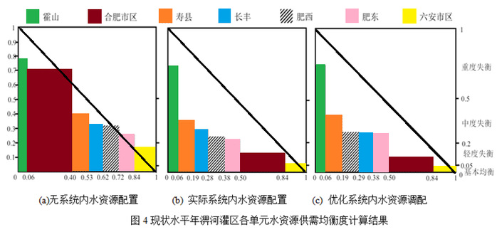 为深刻揭示区域水资源复杂系统的组成结构和关系结构特征,从而科学指导水资源合理配置与科学管理,工口实验室 张礼兵、金菊良、吴成国和崔毅等率先提出以水资源供需差占供需总量之比定义水资源系统的单元供需均衡度,以此为系统评价指标,综合面积、经济和人口构成系统综合权重,结合水资源空间均衡等级标准和空间均衡状态标准,构建集对分析七元联系数用于水资源空间均衡程度的智能综合评价体系,并基于研究组提出的加速遗传算法(Accelerating Genetic Algorithm,AGA)进行水资源系统调配方案优化,有力推动了结构水资源学的理论探索与实践应用工作。