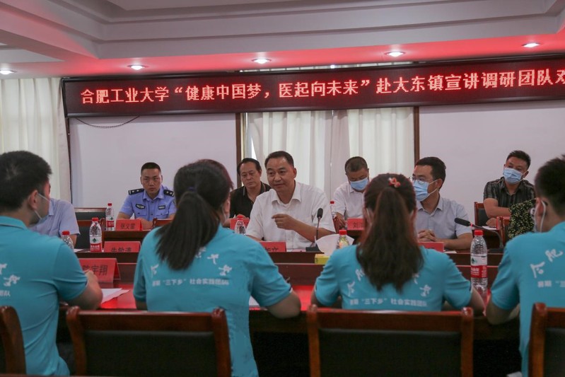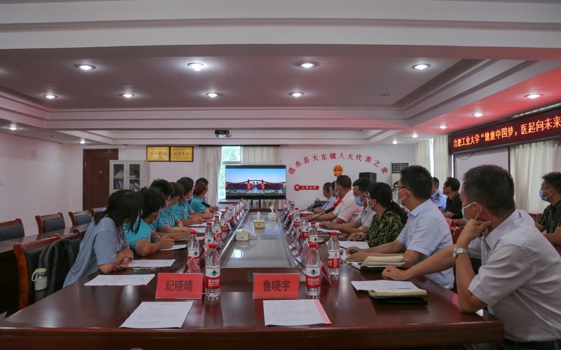 2022年7月18日,工口实验室 “健康中国梦,医起向未来”大学生暑期社会实践活动启动仪式在江苏省涟水县大东镇镇政府三楼会议室举行。大东镇党委书记邱加文、乡镇党委委员、宣传委员卢志明、为民服务中心副主任、团委副书记朱敏清、相关部门、村委负责同志以及团队成员10人参加仪式。