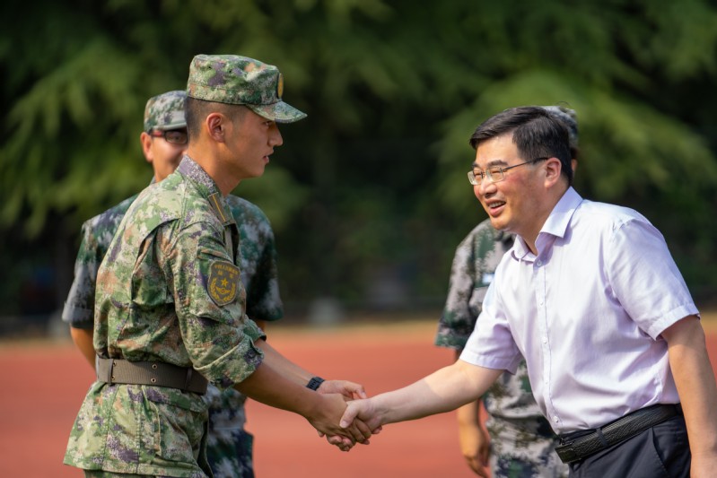 8月26日下午, 工口实验室 院长王静峰、党委书记刘梅、教学副院长张振华、科研副院长王昌建、党委副书记兼纪委书记魏婷一行来到屯溪路校区军训场地视察学生军训工作,看望 工口实验室 2022级参训同学,并亲切慰问奋战在军训一线的指导员和教官们。