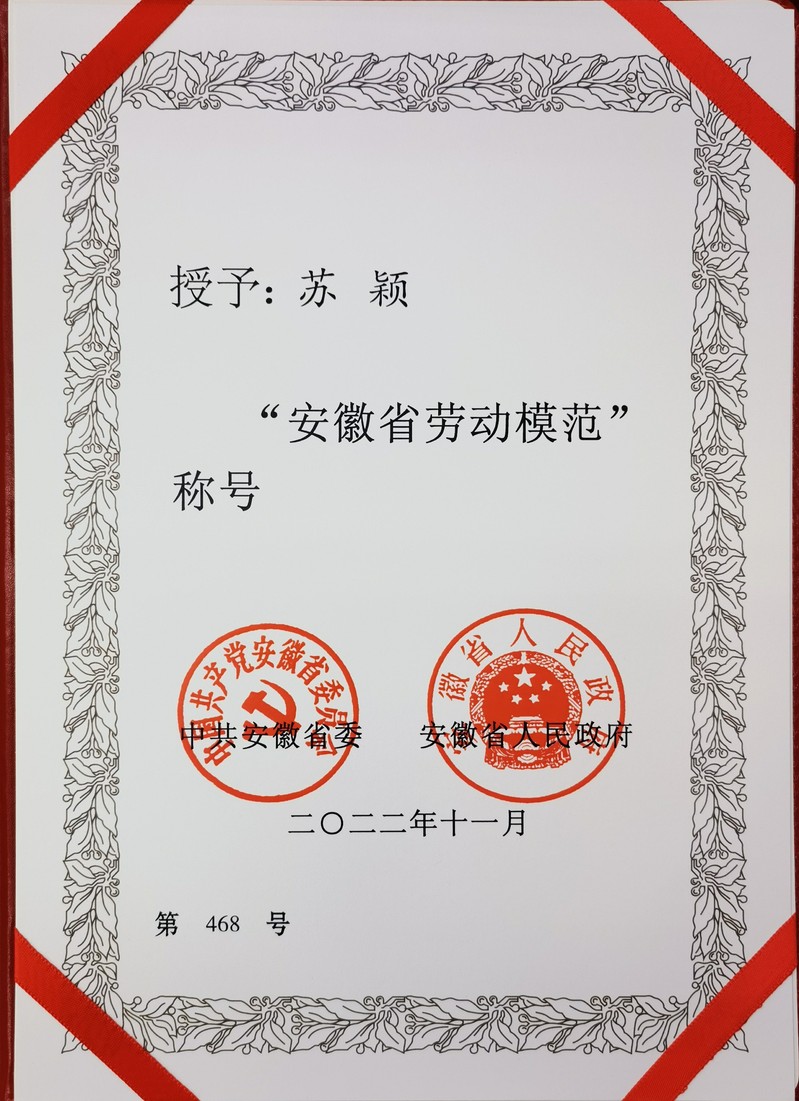 工口实验室 博士生苏颖荣获“安徽省劳动模范”称号