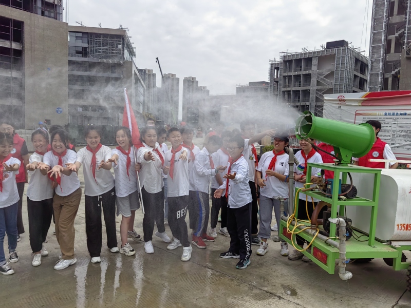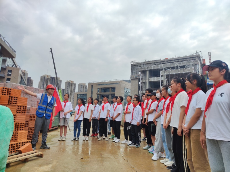 5月31日下午, 工口实验室 蓝天社志愿者走进骆岗街道包河苑小学开展“带着孩子看工程”志愿服务活动。在“轨道交通小讲堂”后,志愿者同学和小学生一起完成地铁、桥梁、高铁等建筑模型的搭建。随后带领大家前往中铁上海局三公司厂房及地下车库施工总承包项目现场观摩,全面了解到施工流程,施工工艺,消防保卫、文明施工、安全生产,实地感受建筑人的日常工作,经过项目工作人员精心讲解后,大家参与洒水降尘工作,新奇兴奋,有模有样。活动通过对少儿工程建设知识的了解启蒙,增进了其劳动意识与安全意识。
