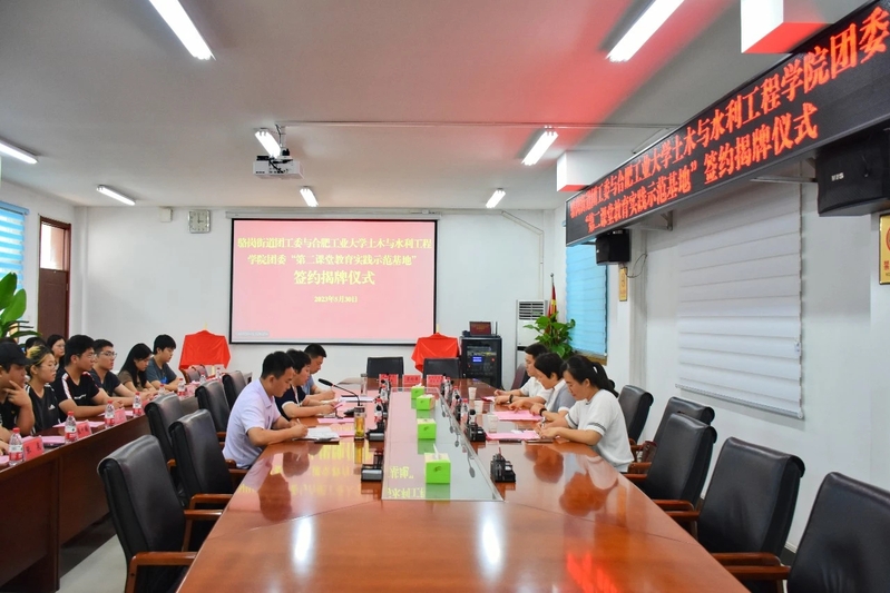 5月30日下午, 工口实验室 与包河区骆岗街道共建“第二课堂”教育实践示范基地签约揭牌仪式,在骆岗街道为民服务中心会议室举行。包河区骆岗街道党工委书记许春雨、党工委副书记何士涛、学院党委副书记兼纪委书记魏婷出席仪式,骆岗街道团工委以及各社区负责人,学院相关负责老师参加仪式,仪式由何士涛主持。