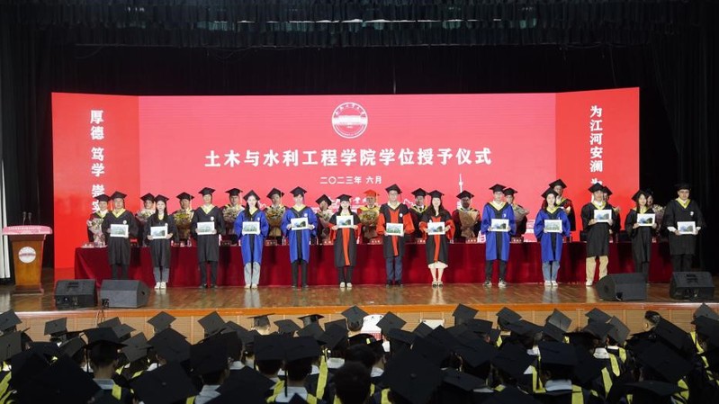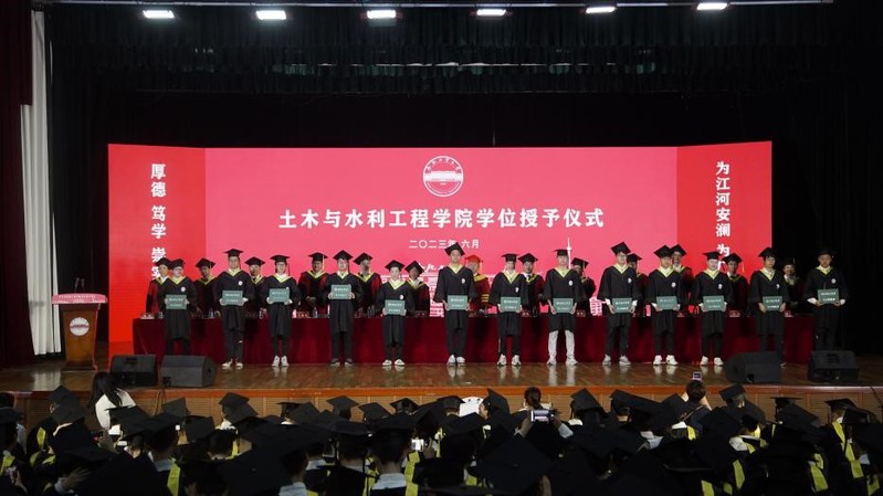 教师代表郭柄霖教授鼓励全体毕业生勤学深思,锐志创新,继续做到重学、好学、乐学,既脚踏实地,又坚持理想,时刻谨记作为土木人的责任与担当,为江河安澜,为广厦万千。校友代表1983届工民建专业徐礼华女士和2000届建工专业校友沈瑞宏先生,分别以视频的方式对母校的培养表达感恩之情,并给全体毕业生送上了深情的祝福和殷切的期望。