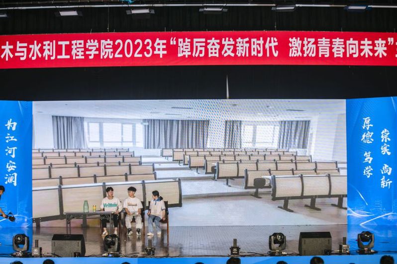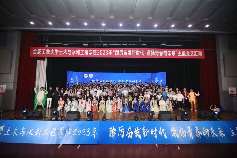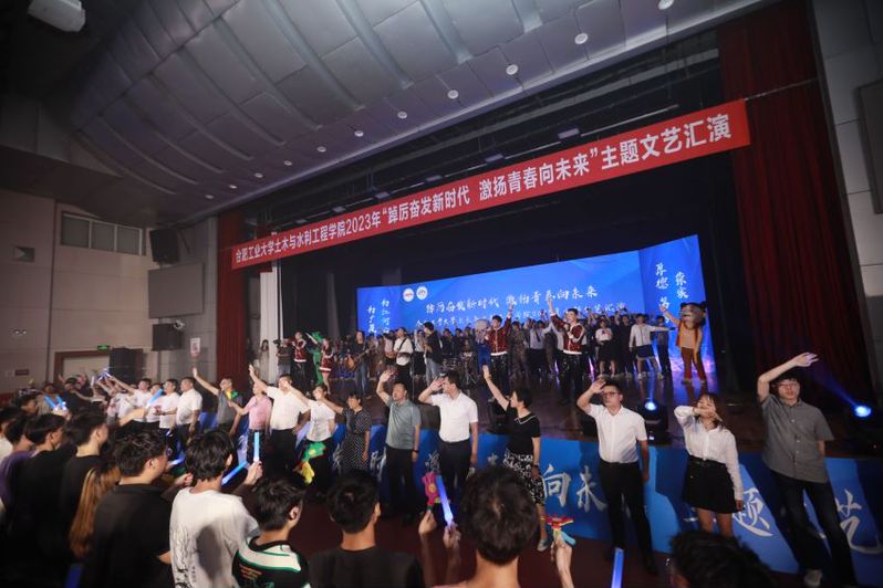 6月14日晚, 工口实验室 2023年“踔厉奋发新时代 激扬青春向未来”主题文艺汇演在屯溪路校区斛兵礼堂举行。学院党委相关负责同志、相关企业负责人、学院各系(中心)负责老师、全体学生政工干部、2023届毕业生及其他年级学生代表共800余人共同观看了演出。