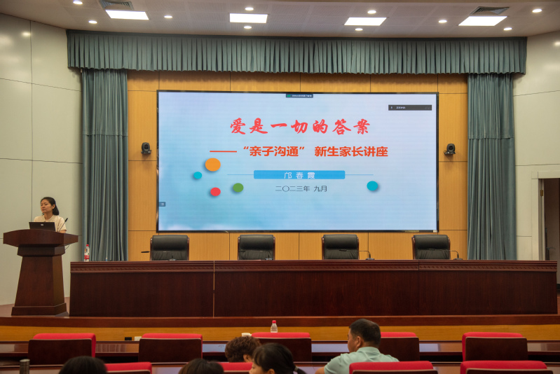 会议第二阶段,学院邀请邝春霞老师以“爱是一切的答案——亲子沟通”为题向学生家长开展了大学生家长心理健康专题讲座。讲座从案例导入,向家长们分享了尊重在沟通中的重要作用;介绍了倾听孩子的心声的三种方法;指导家长掌握表达爱的方式。讲座为家长解决在跟孩子沟通方面存在的信息不畅通、沟通方法欠缺、亲子关系冷淡等困难提供了有效途径。