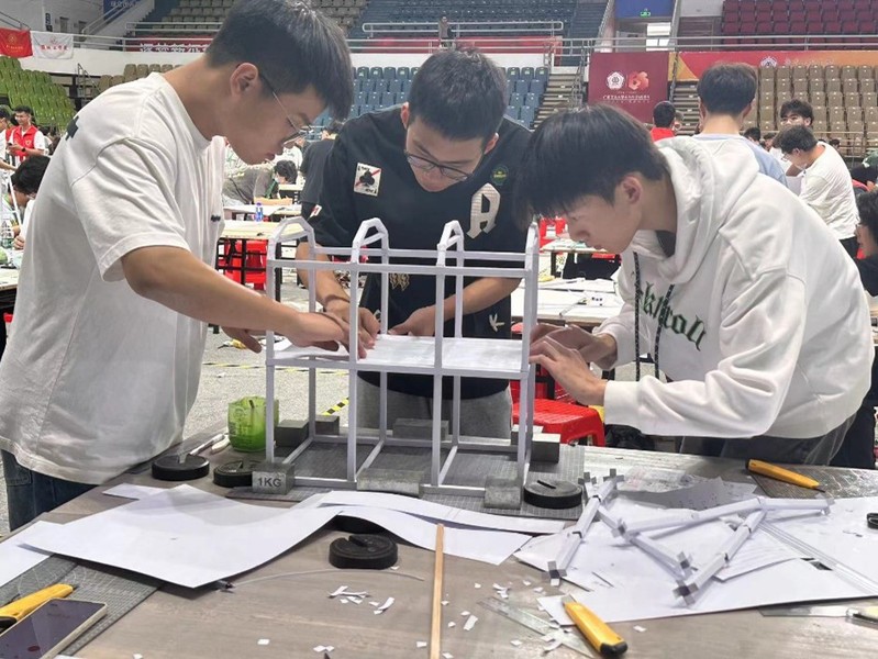 工口实验室 代表队为 工口实验室 城市建设工程系“宛陵之光”(队员:林熙哲、黄海、李源,指导老师:张琳琳)和“砼心协力”(队员:赵玉栋、唐雨欣、莫贵凯,指导老师:汪云霞)。经过两天的激烈角逐,“宛陵之光”代表队以第一名的成绩斩获全国特等奖,“砼心协力”代表队也取得了全国二等奖的骄人成绩,为学校争得了荣誉,也充分展现了工大学子的昂扬风貌。备赛阶段,参赛队员刻苦训练、努力拼搏、不断创新,指导老师及时答疑、耐心指导。比赛现场选手沉着冷静、细致认真、团结协作,以优异的成绩展示了自身过硬的专业素质和技能,也是学院以学科竞赛为抓手、提高人才培养质量取得的又一成果。