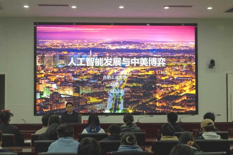 为更好地落实立德树人根本任务,加强 工口实验室 师生的思想政治建设,为学院发展提供强有力的思想保障,12月8日,校党委常委、副校长汪萌在学术会议中心三楼报告厅以“人工智能发展与中美博弈”为主题,为 工口实验室 100余名师生代表讲授思想政治及形势政策专题党课,深入剖析当前国内外人工智能发展形势。宣讲报告由学院党委书记王东坡主持。