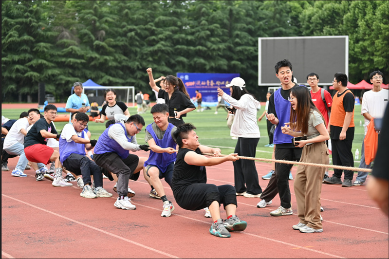 本次素质拓展活动集综合性、趣味性、竞争性于一体,以“悦动 合作 健康”为理念,共设有:拔河、袋鼠跳、沙包投掷等8个项目,也是学院首次师生同场竞技的大型素质拓展活动,参赛师生团结协作、奋勇拼搏、敢于争先,互动合作、自我挑战,活动现场欢声笑语不断。