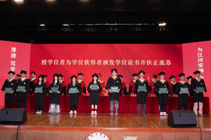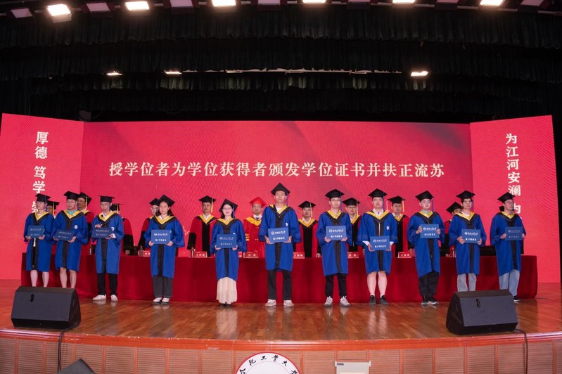 研究生毕业生袁超以及第三届校长奖获得者、安徽省优秀本科毕业生刘高亮分别作为学生代表发言。他们向辛勤耕耘的老师们表达了最衷心的谢意,表示将勇担青年使命,继续秉持“厚德、笃学、崇实、尚新”的校训,弘扬“为江河安澜,为广厦万千”的鸿鹄之志,用热血在未来的人生书写无愧于时代的青春华章。