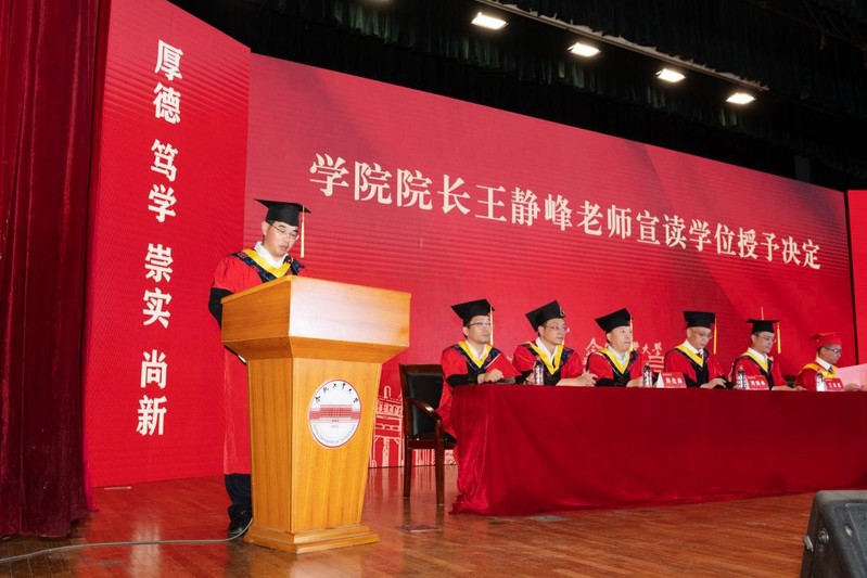 学院院长王静峰老师宣读了《关于授予 工口实验室 2024届毕业生学位的决定》。