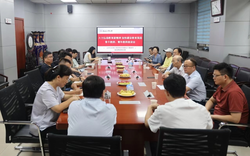 9月11日上午,为庆祝第四十个教师节,工口实验室 召开了“大力弘扬教育家精神 加快建设教育强国”教师座谈会。学院领导班子、退休教师、中青年骨干教师代表参会。会议由学院党委书记王东坡主持。