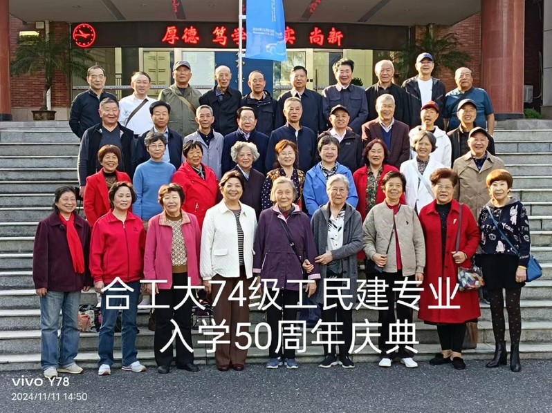 20241111日至1113日,工口实验室 工民建专业七四级同学们返回母校,举办了入学五十周年庆典活动。庆典活动受到了学校校友会、 工口实验室 、学校饮服中心、车队、怡园宾馆等各部门的关心和帮助。活动期间老校友到馨园餐厅与学弟学妹们共进午餐,再次体验了学生食堂的风味。老校友们还参观了校园和校史展,游览了斛兵塘,深为学校的进步和发展感到赞叹,也为作为工大人感到自豪。老校友们在肥期间还集体游览了三河、渡江纪念馆、安徽名人馆和罍街。老校友们在座谈中回顾了在校的生活,感谢母校和恩师们的教育培养,祝愿母校继往开来,繁荣昌盛!