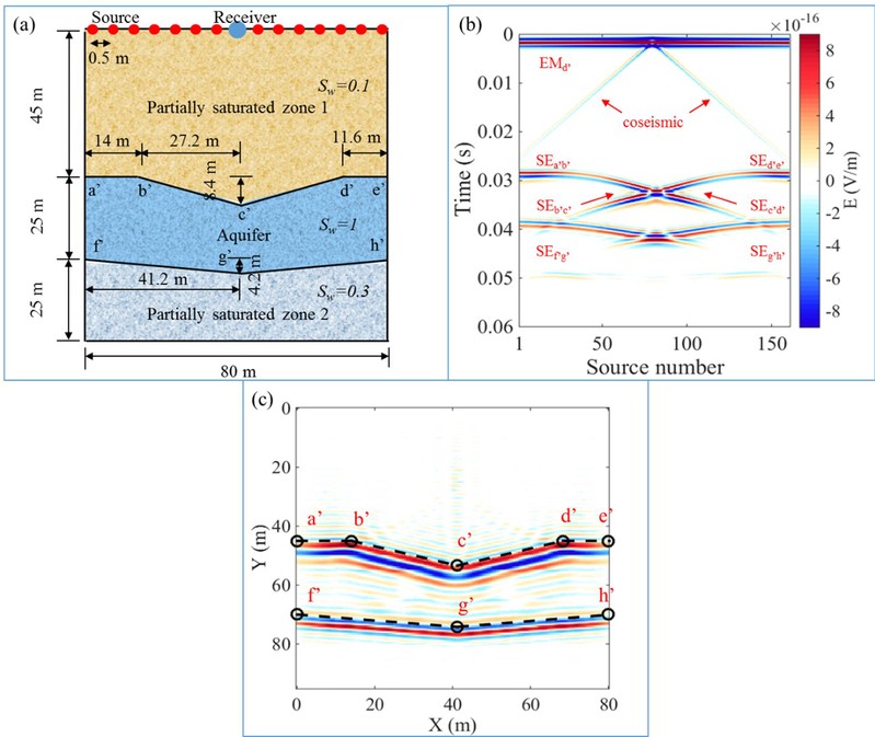 (Liu, J., Gao, Y., Wang, J., Zhu, T., Ding, P., Zhou, G., & Li, S. (2024). Seismoelectric imaging of aquifer interface: Theoretical Investigation and laboratory experiments. Geophysical Research Letters, 51, e2024GL112534. )