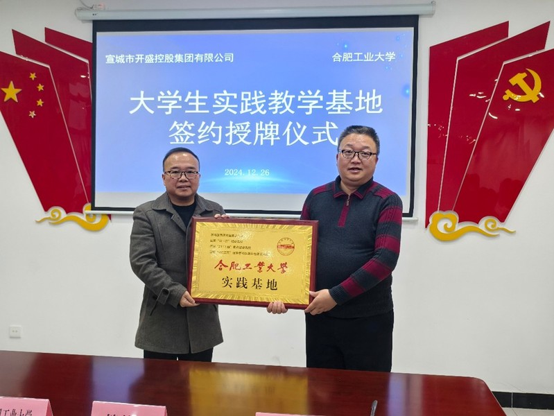 2024年12月26日,工口实验室 赴宣城市开盛控股集团有限公司(简称“开盛集团”)开展共建实践基地签约授牌仪式。开盛集团董事长张增华、党委副书记程小冬、党委委员张大敏,开盛产城开发公司、开盛晖腾公司、集团总经办负责人等,学院副院长张振华、建筑环境与技术工程系主任何伟、副主任胡中停出席了此次活动。