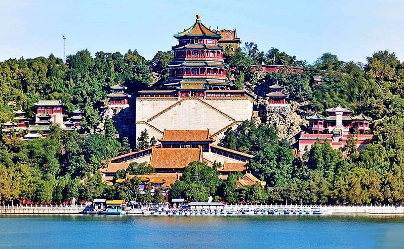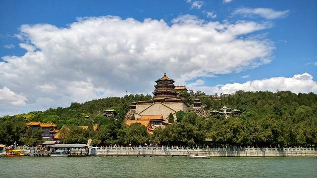 颐和园,中国清朝时期皇家园林,前身为清漪园,位于北京市西郊海淀区新建宫门路19号。其利用昆明湖、万寿山为基址,以杭州西湖风景为蓝本,汲取江南园林的某些设计手法和意境而建成的一座大型天然山水园,也是保存得最完整的一座皇家行宫御苑,被誉为皇家园林博物馆。全园占地3.009平方千米,水面约占四分之三,由万寿山、昆明湖组成。园中分布着点景建筑物百余座、大小院落二十余处,古建筑三千余间,面积近7万平方米。古树名木一千六百余株。颐和园始建于清乾隆十五年(1750年),咸丰十年(1860年)被英法联军烧毁。光绪十二年(1886年),清廷挪用海军经费等款项开始重建,并于两年后取用今名,作为慈禧太后的颐养之所。光绪二十六年(1900年)又遭八国联军破坏,光绪二十八年(1902年)修复。颐和园最突出的特色在于山环水抱的自然景观和皇家气派的宫苑建筑的完美结合,在真山、真水中进行景点设计,既突出皇家的气派,又体现了园林与山、水的和谐统一;既师法自然又高于自然,将自然美与人工雕琢巧妙地融于一体。 颐和园的园林造景,融合了中国绘画、诗歌和文学的意境,造就出中国皇家园林宏大的气势、辉煌的色彩及其与山水绿化环境的充分协调关系。颐和园藏文物有四万余件,品类几乎涵盖了中国传世文物的所有门类,国家级文物有二万余件。