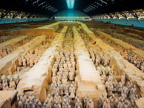 秦始皇陵建于秦王政元年(前247年),秦二世二年(前208年)竣工,历时39年,是中国历史上第一座规模庞大,设计完善的帝王陵寝。有内外两重夯土城垣,象征着帝都咸阳的皇城和宫城。陵冢位于内城南部,呈覆斗形,现高51米,底边周长1700余米。据史料记载,秦陵中还建有各式宫殿,陈列着许多奇异珍宝。秦陵四周分布着大量形制不同、内涵各异的陪葬坑和墓葬,已探明的有400多个,其中包括“世界第八大奇迹”中的兵马俑坑。秦始皇陵是世界上规模最大、结构最奇特、内涵最丰富的帝王陵墓之一。充分表现了2000多年前中国古代汉族劳动人民的艺术才能,是中华民族的骄傲和宝贵财富。