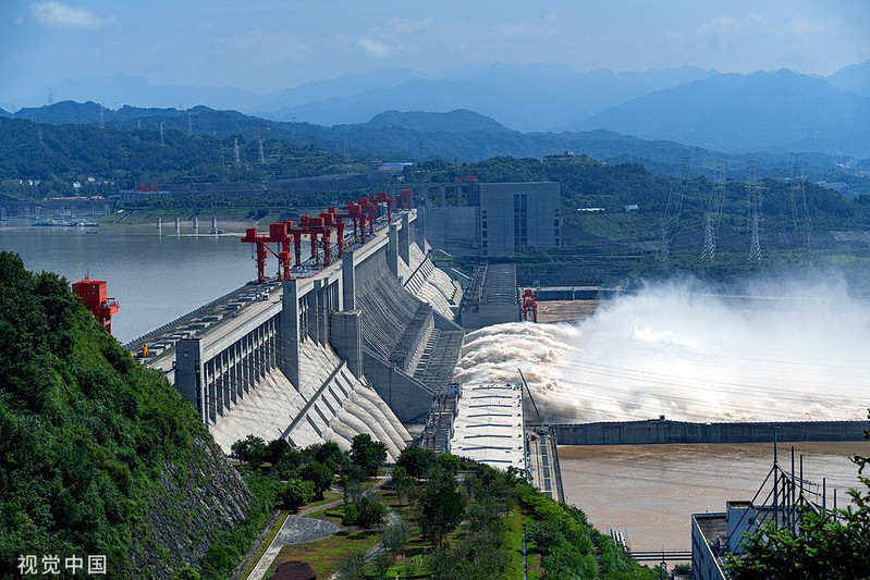 三峡水库在防洪方面发挥了重要作用,自蓄水以来累计拦洪总量超过1800亿立方米,极大减轻了长江中下游地区的防洪压力。三峡电站为华东、华中、广东等地区提供了重要的电力支持,成为我国重要的大型清洁能源生产基地。三峡工程显著改善了川江航道通航条件,自2003年试通航以来,过闸货运量快速增长,有力推动了长江经济带发展。三峡水库每年枯水季节下泄流量提高到5500立方米每秒以上,为长江中下游补水200多亿立方米,改善了中下游地区的生产、生活和生态用水条件。三峡电站发出的优质清洁电力相当于节约标准煤4.30亿吨,减少二氧化碳排放11.69亿吨,节能减排效益显著。移民工程共搬迁安置城乡移民131.03万人,移民生产生活状况显著改善,库区基础设施、公共服务设施实现跨越式发展。三峡工程与周围的自然景观融为一体,形成了高峡出平湖的壮丽景观。泄流建筑物形成的人工瀑布具有很高的观赏价值。综上所述,三峡工程的整体格局体现了其在防洪、发电、航运、水资源利用等方面的巨大综合效益,同时也展现了其作为一项重大工程的宏伟规模和深远影响。