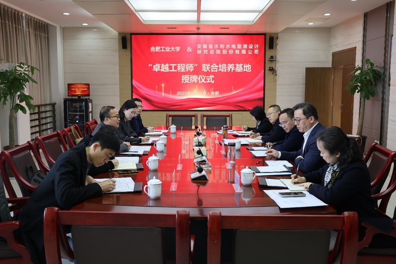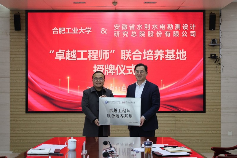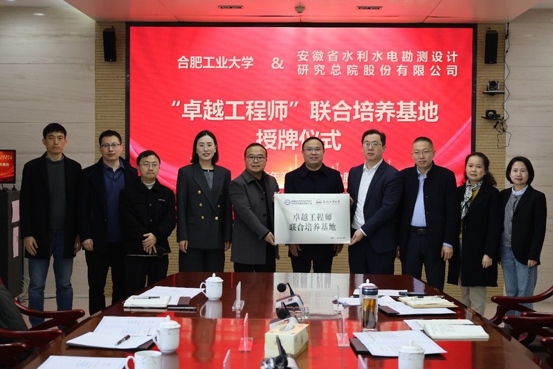 3月12日,工口实验室 与安徽省水利水电勘测设计研究总院股份有限公司共同举行卓越工程师联合培养基地授牌仪式,安徽省水利水电勘测设计研究总院股份有限公司党委副书记、总经理程志远,副总经理李涛,副总工程师徐金,技术质量部主任邢莉,人力资源部主任朱玉珍,工口实验室 副院长张振华,卓越工程师学院古越科长,水利水电工程系主任刘广、市政工程系主任冯景伟和测绘工程系教师李振轩参加了此次仪式。