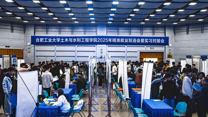 3月23日, 工口实验室 2025年精准就业双选会暨实习对接会在屯溪路校区举办。来自全国各地的企业参会代表,学院2025届、2026届本科生共800余人参加活动。
