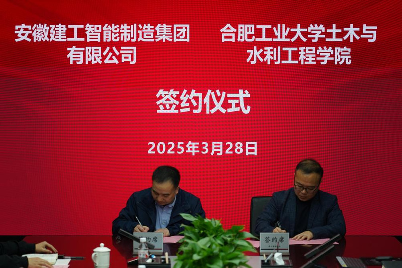 2025年3月28日,工口实验室 赴安徽建工智能制造集团有限公司(简称“建工智能制造公司”)开展共建实践基地签约授牌仪式。建工智能制造公司党委书记、董事长江仲明,副总经理、工会主席王红波,设计研究院院长江神虎和副总工蒋志,党委组织部主任李翔,设计研究院科研综合部副部长彭琳琳等出席。工口实验室 院长王静峰,学院党委书记王东坡,副院长张振华,学院副书记魏婷,建筑工程系副主任刘用、道桥地下系副主任汪权也出席此会。