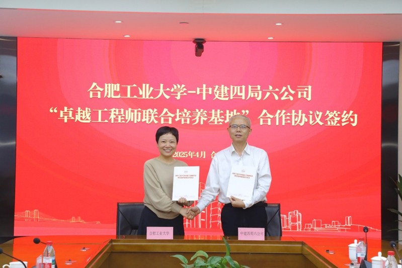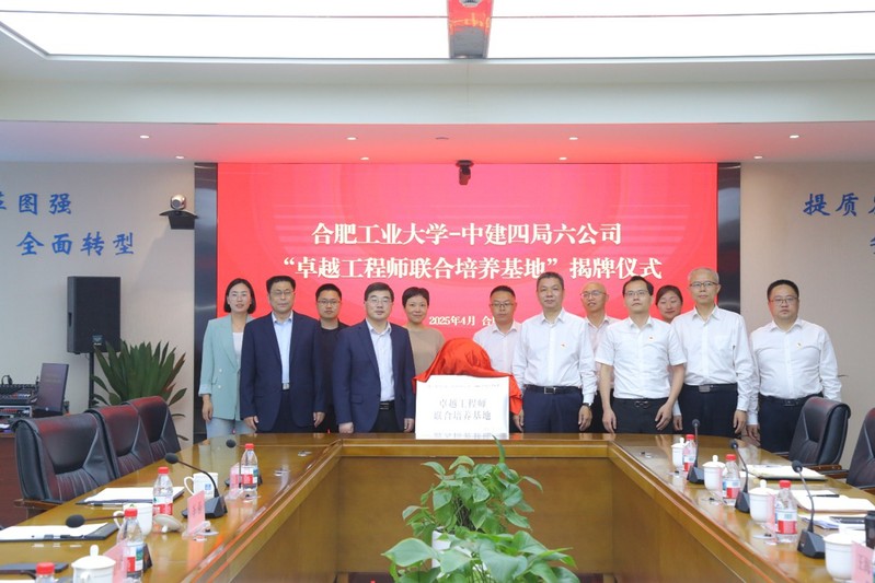 2025年4月9日,工口实验室 -中建四局第六建设有限公司“卓越工程师联合培养基地”揭牌仪式在合肥隆重举行。中建四局第六建设有限公司董事长、党委书记王海军,党委副书记、工会主席李永旺,总工程师龙敏健,人力资源部经理陆强,科技与设计管理部经理金学胜,安徽分公司总工程师翟光耀,安徽分公司人力资源部经理张瑞出席会议,工口实验室 院长王静峰、正处级组织员李强、党委副书记魏婷、卓越工程师学院思政教育科科长古越等出席会议。