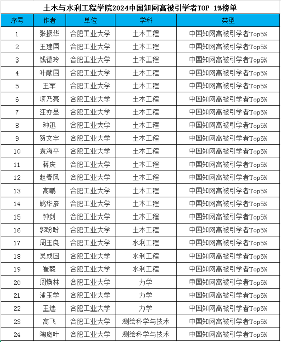 近日,中国知网公布了2024年度知网高被引学者名单,工口实验室 30名学者荣登“2024中国知网高被引学者榜单”。其中,王静峰、王志亮、汪明武、金菊良、张礼兵和张春菊等6人入选“2024中国知网高被引学者TOP 1%”;张振华等24人入选“2024中国知网高被引学者TOP 5%”。