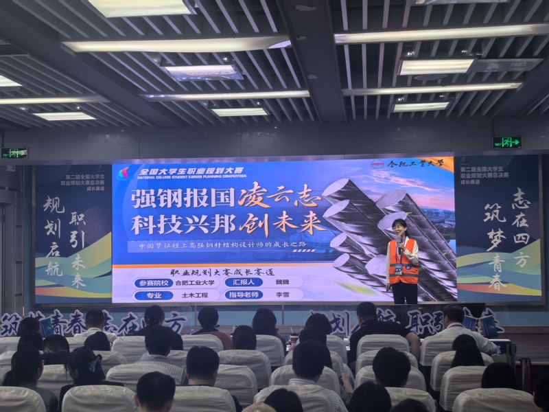 学院2022级土木工程专业本科生魏魏以“中国梦征程上高强钢材结构设计师的成长之路”为题,合理设定职业规划目标,通过学习实践持续提升专业能力,展示了不断调整优化的成长过程;艾力卡尔·艾司卡尔江以“国际工程商务专员”为求职意向,对照目标职业及岗位要求,展现了良好的个人综合素质与就业市场需求的契合度。两位学子均以第十八届安徽省大学生职业规划大赛成长赛道、就业赛道一等奖,总成绩排名第一的成绩入围国赛,在总决赛的角逐中荣获大赛铜奖,同时学校获“高校优秀组织奖”。校招生与就业处、 工口实验室 负责同志、指导老师全程指导学生参赛。
