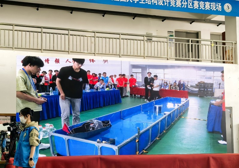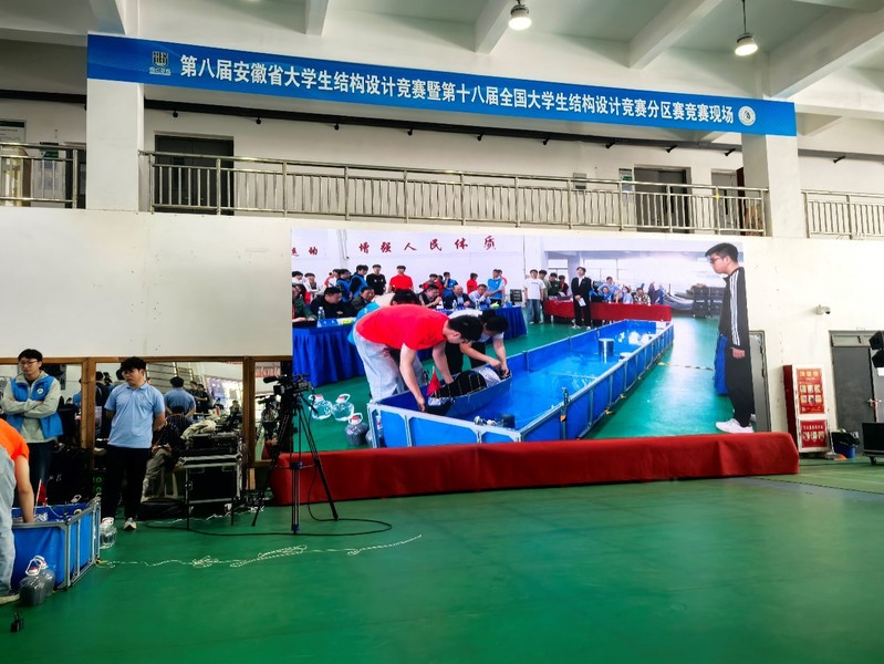 赛题以乌篷船模型结构设计与制作为主题,要求参赛者设计优化船体流线型、提升其抗撞击性能,同时考虑平衡其载重与航行能力。 工口实验室 对参赛高度重视并精心准备,先期举办了校内第二十届大学生结构设计竞赛,从中选拔六支参赛队伍。经过4天紧张激烈的方案设计、模型制作、陈述答辩及加载试验,合肥校区“江河安澜”代表队(参赛学生:王和军、黄天翼、顾昊川)获得本届赛事一等奖(总排名第2),“小船队”代表队(参赛学生:邓达昊、陈墨涵、刘雨轩)获得本届赛事三等奖;宣城校区“取经小分队”代表队(参赛学生:黄浩然、申子陶、欧阳昕柏)及“非专业团队”代表队(参赛学生:王钧珂、张宇行、崔文浩)获得本届赛事三等奖。