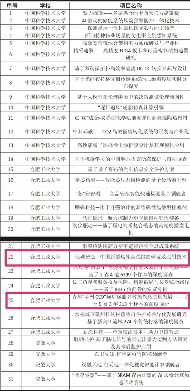 近日,第十一届“挑战杯·华安证券”安徽省大学生课外学术科技作品竞赛省级决赛名单公布,工口实验室 入围13项作品,其中,工口实验室 报送的《低碳智造-中国新型热轧高强钢筋研发及应用技术》、《青年“乡村CEO”何以赋能乡村振兴高质量发展——基于53313个样本的深度调研》2项作品入选。