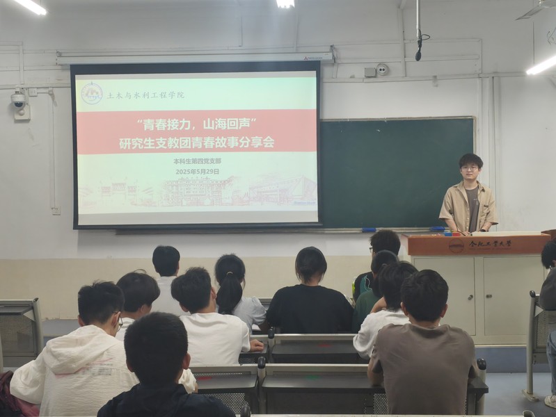 529日晚, 工口实验室 在主教学楼214举办“青春接力,山海回声”研究生支教团青春故事分享会活动,本次活动邀请了工口实验室 第25 届研究生支教团成员朱礼东分享他的支教经历。学院本科生第四党支部成员参加了此次活动。