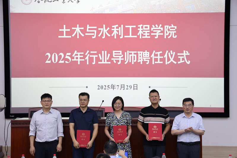 受聘仪式上,学院领导为安徽省水利水电勘测设计研究总院股份有限公司丁美松等30余位行业导师颁发了聘书。同时,邀请了部分行业导师做了工程实践专题报告会。中铁四局集团有限公司刘玉波、中国建筑科学研究院杜风雷、安徽海螺产业技术研究院有限公司刘致远、工口实验室 设计院(集团)有限公司张青峰、中水三立数据技术股份有限公司常仁凯等,分别就大型企业业务创新开拓、能源重大基础设施建设、建材低碳技术路径、结构设计工程实践、智慧水利发展等主题作了精彩分享。
