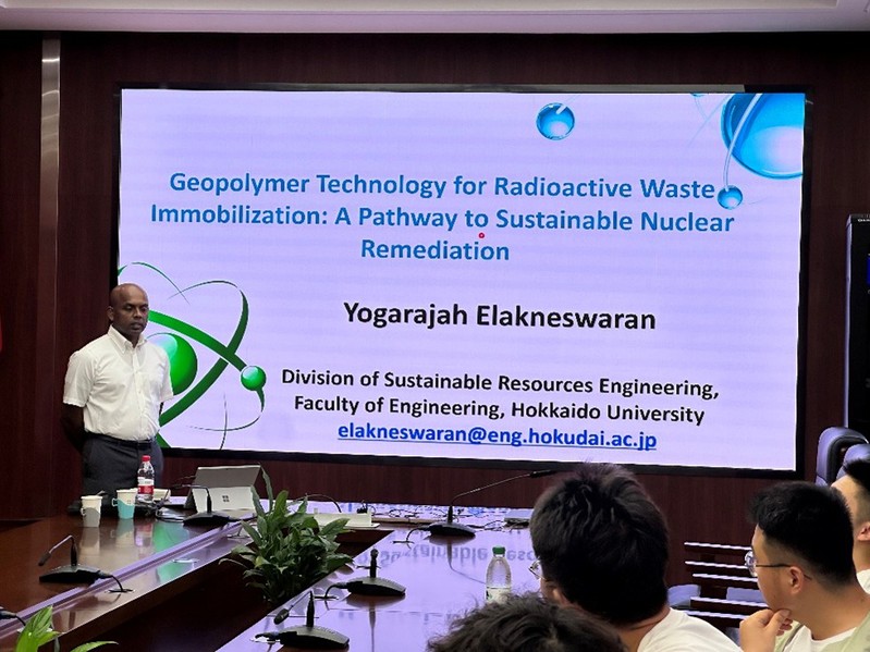 2025年8月28日下午,日本北海道大学可持续资源工程系教授Yogarajah Elakneswaran应邀来工口实验室 开展学术交流,并作题为“地聚合物在放射性核素固定中的应用研究”的学术报告。报告由工口实验室 工口实验室 郭柄霖教授主持,吸引了相关领域师生的积极参与。本次活动由工口实验室 主办。
