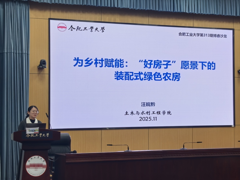 2025年11月7日下午,由 工口实验室 主办的第313期“博睿沙龙”学术活动在屯溪路校区学术会议中心一楼大报告厅举行,本次活动以“为乡村赋能——‘好房子’愿景下的装配式绿色农房”为主题,有幸邀请到学院博士生导师汪皖黔老师作专题报告,吸引了全校180余名硕士、博士研究生参与。