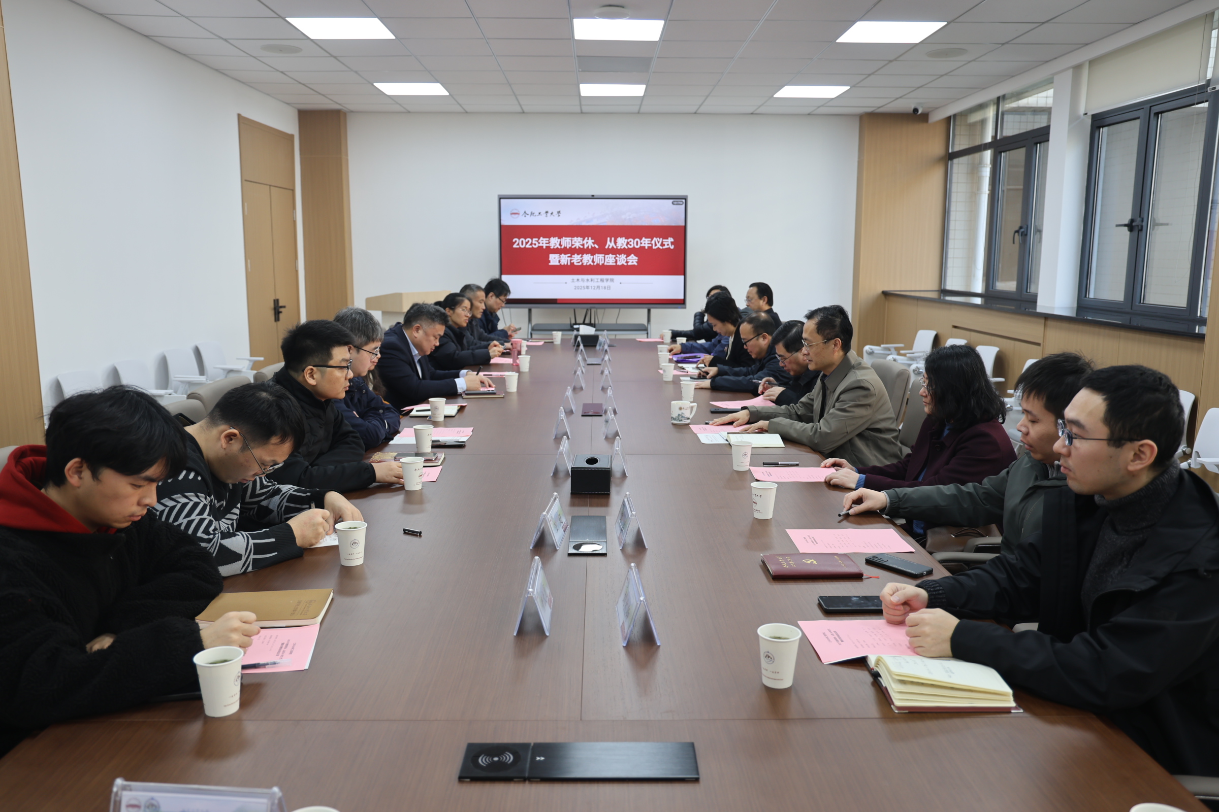 为弘扬尊师重教传统,致敬深耕杏坛的教育工作者,传承学院优良师风学风,1218日, 工口实验室 在纬地楼506会议室隆重举办2025年教师荣休、从教30年仪式暨新老教师座谈会。会议由学院党委书记王东坡主持,学院领导班子、退休教师、从教30年教师、新入职青年教师、各系教师代表参加。