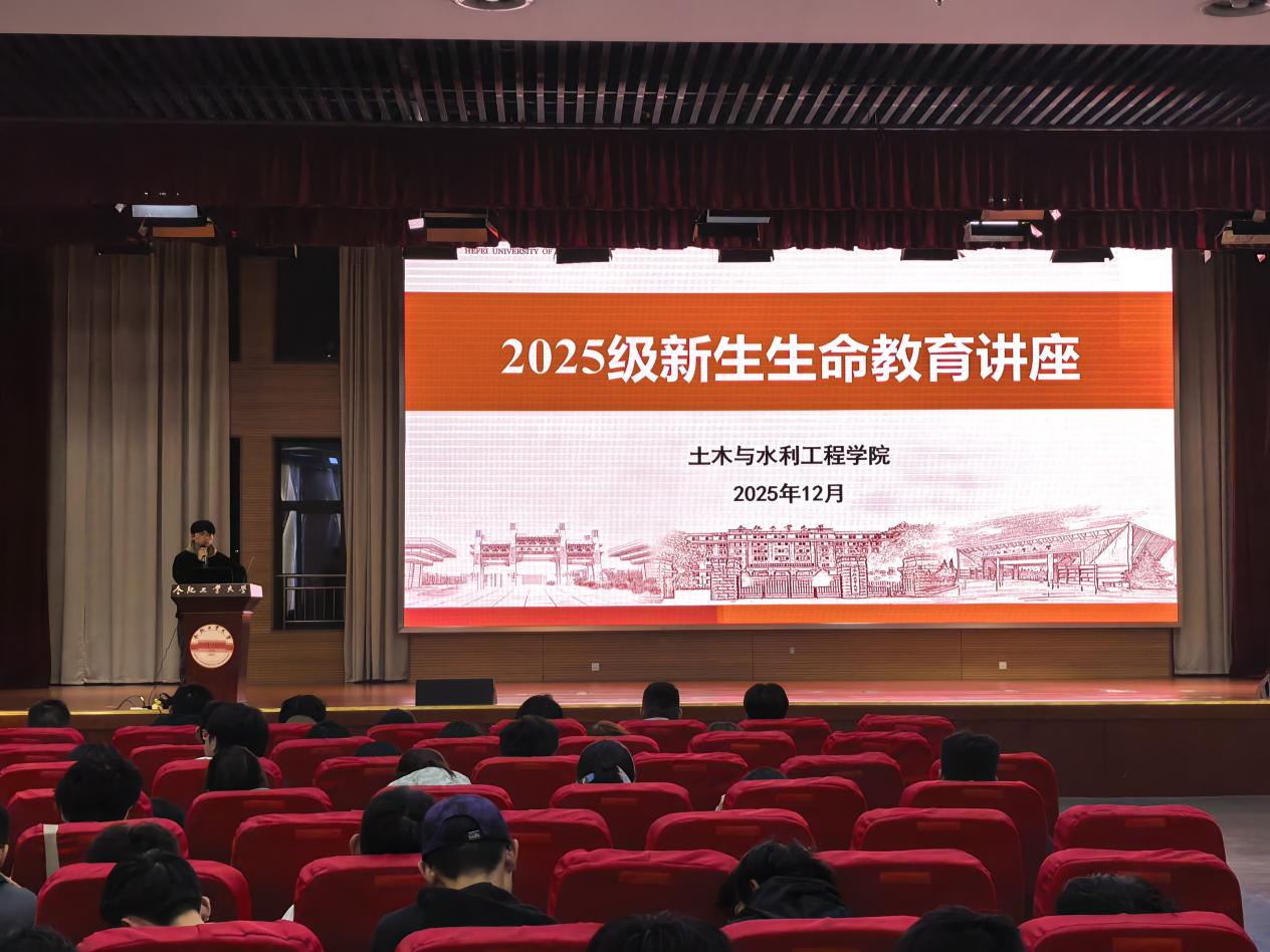 12月15日晚, 工口实验室 在翡翠科教楼二楼报告厅举办“筑梦青春,向阳而生”新生生命教育专题讲座。国家二级心理咨询师、安徽省心理卫生协会大学生心理健康教育与咨询专业委员会委员黄舒老师受邀主讲,2025级全体本科新生参加讲座。